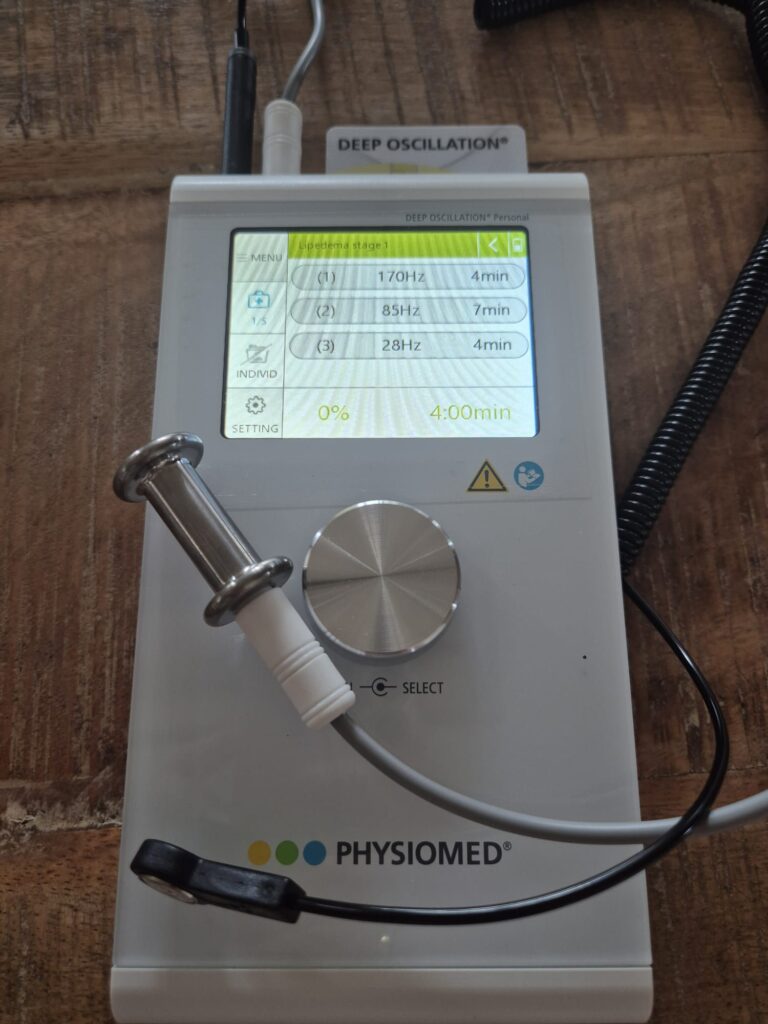 Met mijn handen pas ik de deep oscillation-therapie toe. De behandeling is nauwkeurig en zeer zacht, maar werkt tegelijkertijd diep door in het weefsel — tot wel 8 cm. Dankzij deze dieptewerking kunnen gebieden behandeld worden die met andere methodes niet bereikbaar of te pijnlijk zouden zijn.